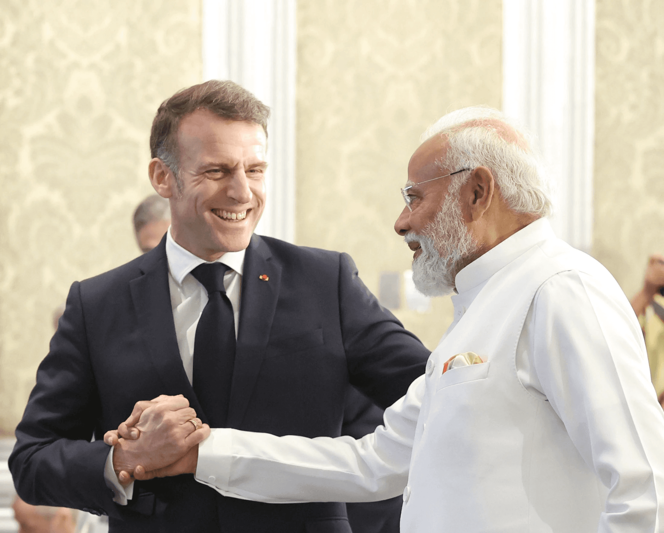 In the field of defense, France is a steadfast partner of Make in India. Our high-level cooperation allows us to develop next-generation engines, multi-role helicopters, advanced combat aircrafts, submarines, etc. And I want to thank you warmly for the extraordinary confidence you've placed in this partnership. And this is not just a defense contract, but a series of defense contracts. We speak about what a sovereign alliance is. Two great nations choosing each other on land, at sea, and in the sky, not by default, but by conviction. And our cooperation is also crucial in the space sector. The development of the TRISHNA satellite shows what we can achieve when scientific excellence and industrial expertise are brought together. Thanks to this innovation, we will be able to better monitor and understand climate change. We do want to do much more in these sectors, defense, space, because especially space is a great sector in order to better understand our planet, to better monitor, obviously, communications, our defense activities and our sovereignty, a better understanding of climate change. And I want to complement here our scientists, labs and so on, working closely together in these sectors, especially when some others are withdrawing their effort.