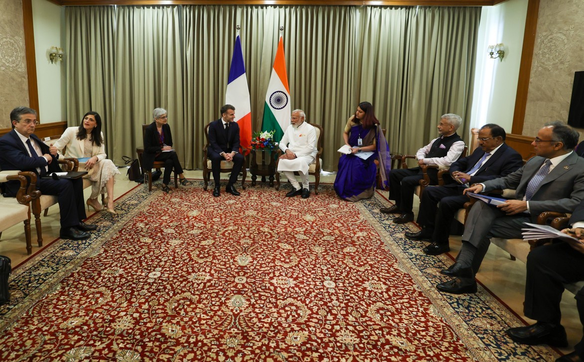 Addressing climate change also means transforming the way we produce energy. France is supporting India's ambition to expand its access to decarbonized energy through large power reactors as well as the Small Modular Reactors. This year, we will develop a series of very important projects in this field. We launched 8 years ago together the Solar Alliance Initiative, working very well, by the way. We have a lot of civilian nuclear initiatives here in the country. This year, Airbus, we will develop a demonstrator for the production of sustainable aviation fuel, helping to accelerate the decarbonization of air transport in India, and I could mention a series of different initiatives like this one to illustrate the strengths and the depths of this partnership.
